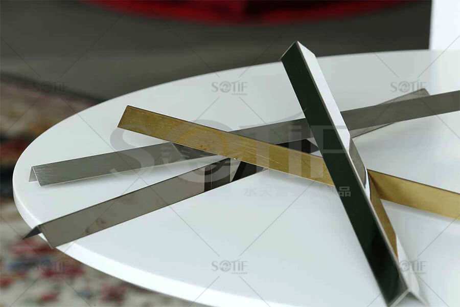 不銹鋼裝飾條慣例201,304型號,銀色,玫瑰金,香檳金,黑鋼、鈦金、古銅顏色等。不銹鋼裝飾線條的裝飾優點還有就是比擬的百搭,顏色的選擇也比擬的豐厚,作風效果比擬的小氣,共同的金屬質感給我們的房子加分不少。故而越來越多人選擇用不銹鋼裝飾條。